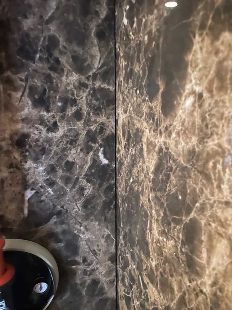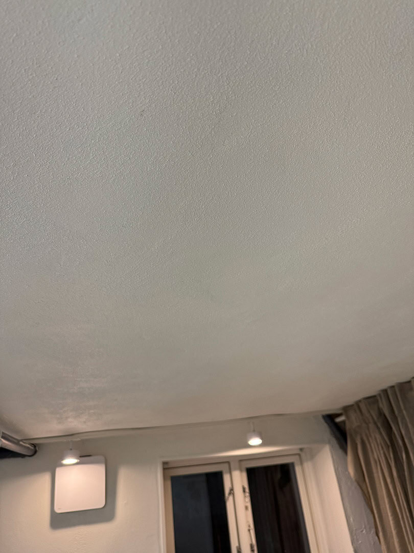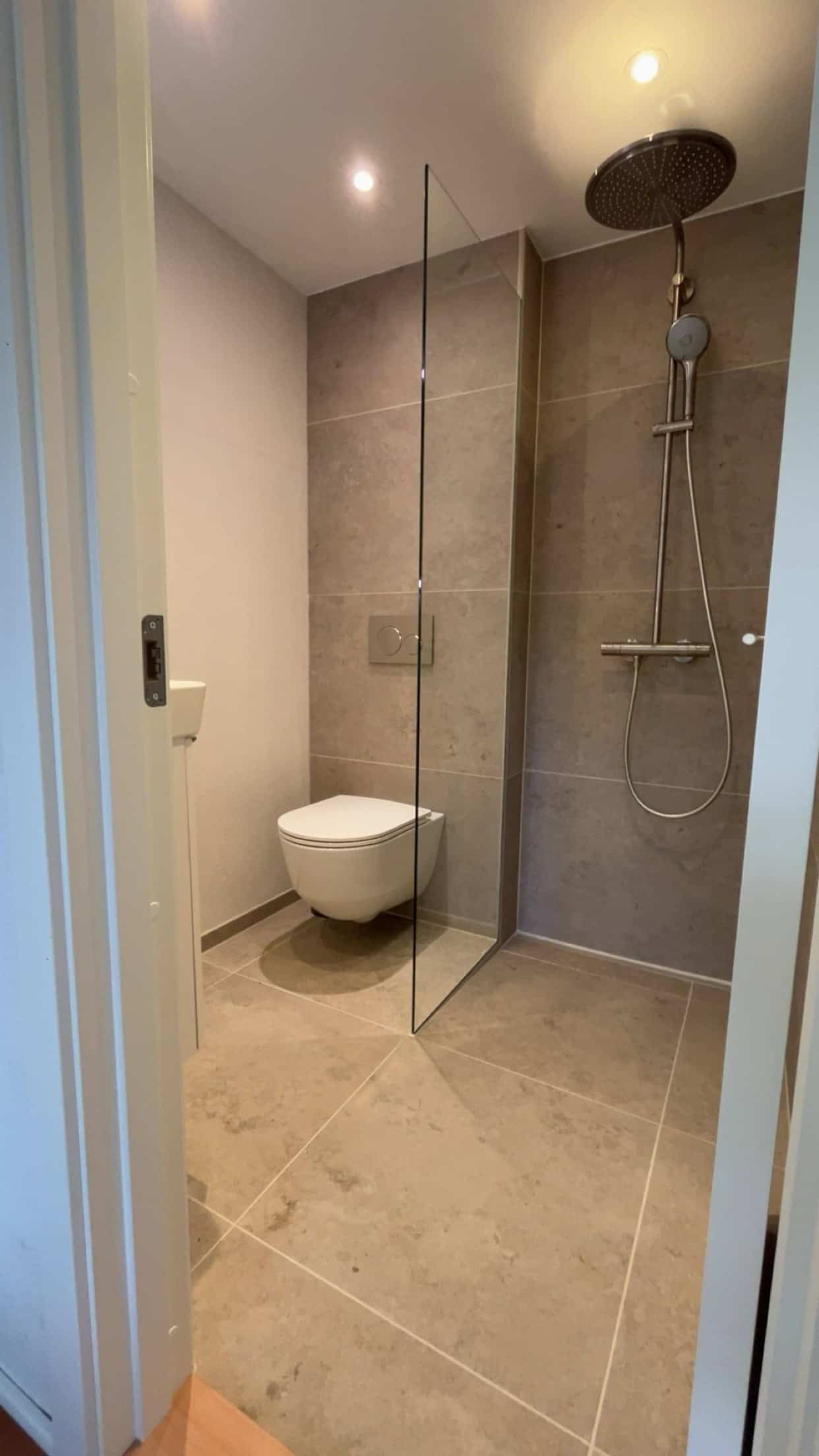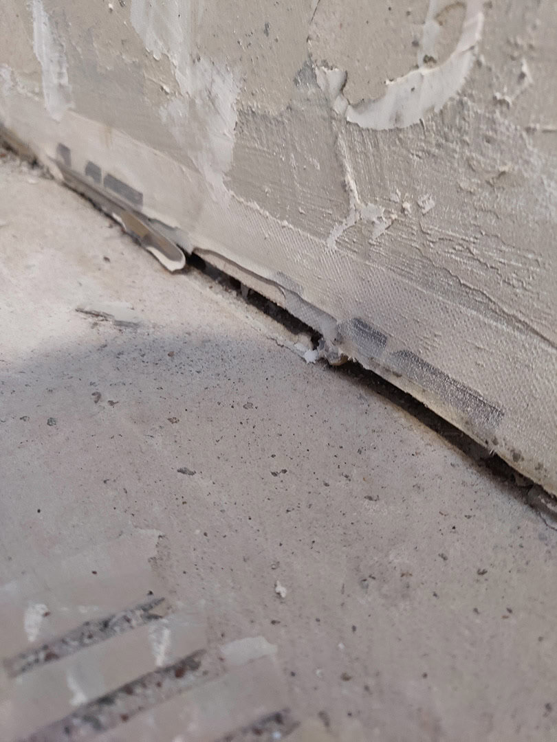 Her har vi udbedret to badeværelser på 1. sal, der var ramt af utætheder og sætningsskader i både gulv og vægge.